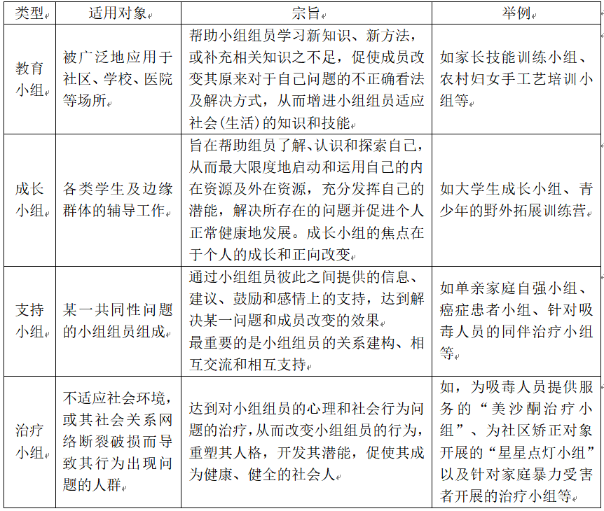 小组工作的类型介绍