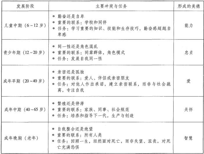 根据埃里克森的理论,儿童中期(6-12岁)的主要冲突是勤奋还是自卑。在这个阶段,儿童在学校和同伴中学习重要的知识、技能和生存技巧。如果他们能够成功地掌握这些技能并感到自己是有能力的,就会发展出勤奋感;反之,如果他们感到自己不如别人,就会产生自卑感。