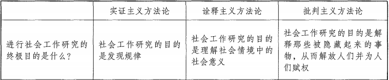 与社会工作研究有关的方法论:实证主义方法论、诠释主义方法论、批判主义方法论。