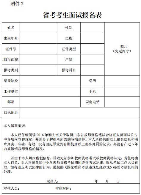 2016年下半年山东泰安市教师资格证面试报名时间公告