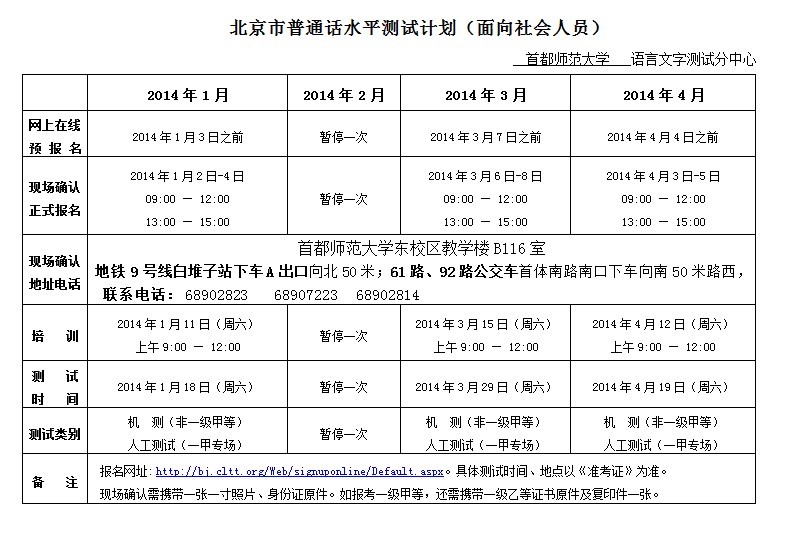 北京首师大2014年1-4月份普通话报名时间(面向社会人员)