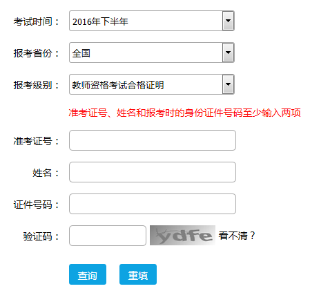 2、输入准考证号、姓名和报考时的身份证件号码(至少输入两项,证件号码区分大小写),点击查询按钮进行查询。