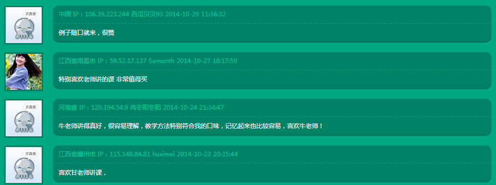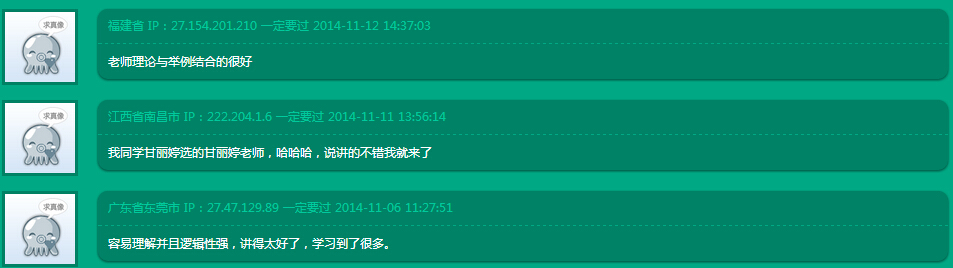 截取最新网友发表评论,看看大家都是怎么说的:(更多学员评价可点击相应的课程进行查看>>学员评价)