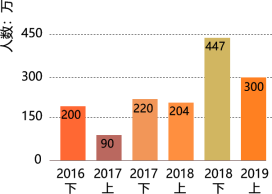 2018年下半年考试考生人数是上半年的2.2倍,2019上半年报考人数是2018同期的1.48倍!