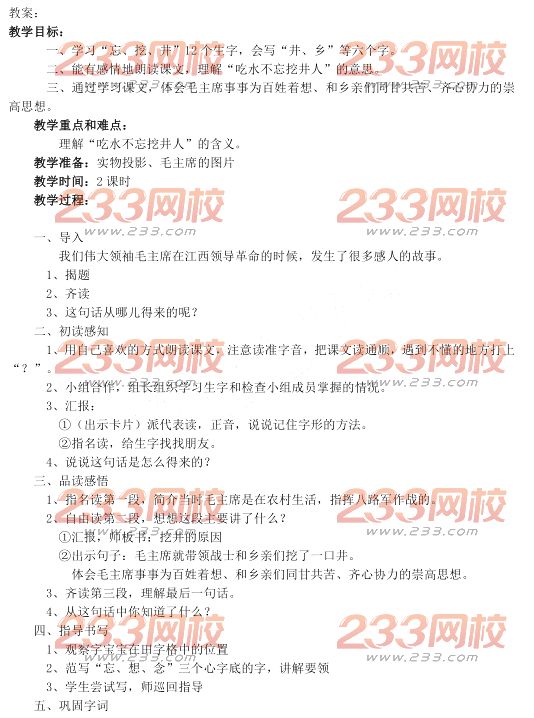 2018年下半年小学语文教师资格证面试真题及答案解析:《吃水不忘挖井人》
