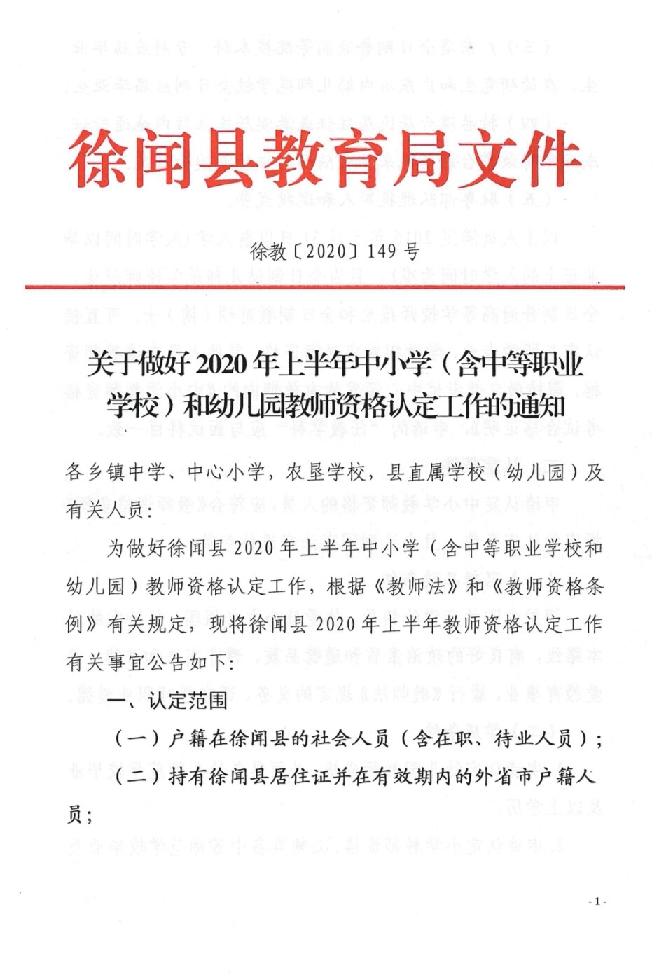 原标题:徐闻县关于做好2020年上半年中小学(含中等职业学校)和幼儿园教师资格认定工作的通知