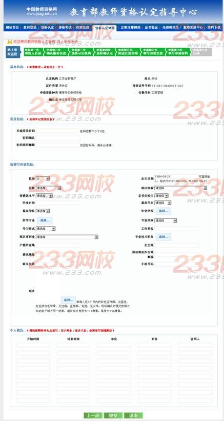 在填写的过程中,应届毕业生的“现从事职业”选择“应届毕业生”;“工作单位”和“毕业时间”的填写内容请咨询当地教育行政部门或者学校辅导员;专业技术职务如果没有,请选择“无”。