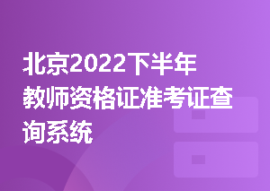 北京2022下半年教师资格证准考证查询系统在中小学教师资格考试网进行,准考证打印时间10月25日-29日。北京2022下半年教师资格证准考证查询系统>>01北京教师资格证考试时间安排02北...