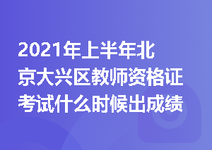 2021年上半年北京大兴区教师资格证考试什么时候出成绩?