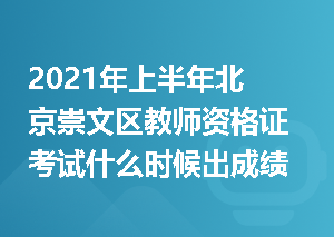 2021年上半年北京崇文区教师资格证考试什么时候出成绩?