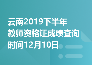 从云南2019下半年教师资格证报名公告中可知,云南2019下半年教师资格证成绩查询时间12月10日。云南教师资格证成绩查询网址一:教师资格证成绩快捷查询入口 点击查分>>>云南教师资格证成绩查询网址二:中小学教师资格考试网http://link.233.com/13407考生如对本人的考试成绩有异议,可在成绩公布10日内,到考试所在地的州、市招生考试机构,填写“中小学教师资格考试笔试成绩复查申请表”提出复核申请,复核范围为漏登分、错累分,漏评阅试题试卷。复查结果由州、市招生考试