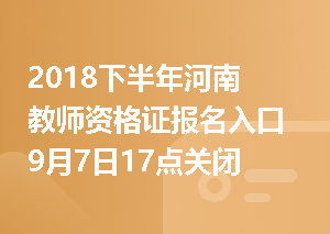 2018下半年河南教师资格证报名入口9月7日17点关闭,考生可登录中小学教师资格考试网进行河南教师资...