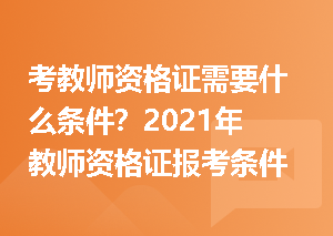 2021年考教师资格证需要什么条件?考教师资格证需要的条件如下:测试你是否符合教师资格证报考条件>>1.具有中华人民共和国国籍;2.遵守宪法和法律,拥护中国共产党领导,热爱教育事业,具有良...