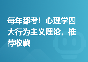 教师资格科目二心理学部分,其中有四大常考的行为主义理论。这部分内容主要以客观题的形式考察,偶尔考材料分析题,因此,这部分内容的学习方式为:心理学家+对应的心理实验+得出的基本规律,重点在于理解其基本规...