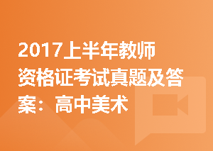 2017上半年高中美术教师资格证考试真题及答案更新完毕点击以下图片即可查看2017上半年教师资格证高中美术真题及答案2017上半年高中美术真题点击查看>>历年高中美术教师资格证真题及答案[Page]2017上半年教师资格证考试真题及答案——高中美术 2017年上半年教师资格证考试《美术学科知识与教学能力》(高级中学)于3月11日下午16:00-18:00进行,届时233网校-教师资格证考试网将及时发布考后教师资格证真题,并提供老师解析真题及答案、在线估分等,方便广大考生朋友顺利估分