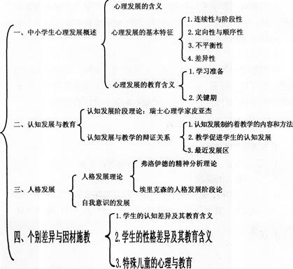 1.了解:心理发展、自我同一性、学习准备和关键期等基本概念;了解学生智力的差异、学习风格的类型;了解埃里克森的人格发展阶段理论以及弗洛伊德的精神分析理论。