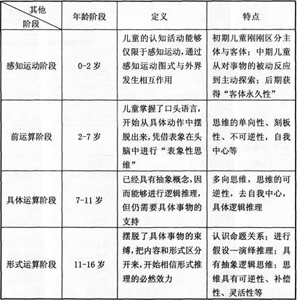 知识点表格一:皮亚杰提出了认知发展的阶段理论