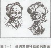 夸张与强调是改变客观事物的正常特征,使事物的某一部分或一种特性增大、缩小、数量增多、色彩加浓等在头脑中形成新形象的过程。例如,人们创造的千手千眼佛、九头龙及《格列佛游记》中的大人国、小人国等形象,还有人们常看到的一些人物的漫画就是绘画者对人物特点夸张或强调的结果,如图6—5所示。这种方式是各种创作的一种重要手法。