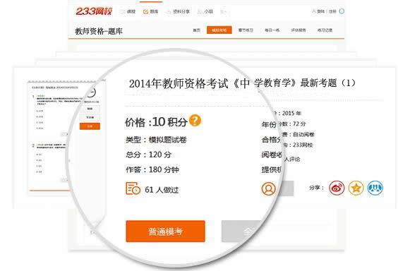 活动目的:2014下半年教师资格报考已陆续进行,正是备考做题的好时节!233网校题库