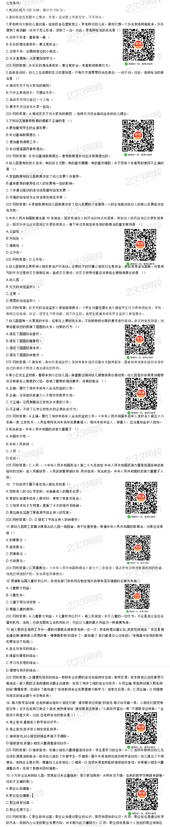 考后,233网校会及时对2020年教师资格幼儿综合素质真题讲解,分析难度,考核重点等。敬请关注!