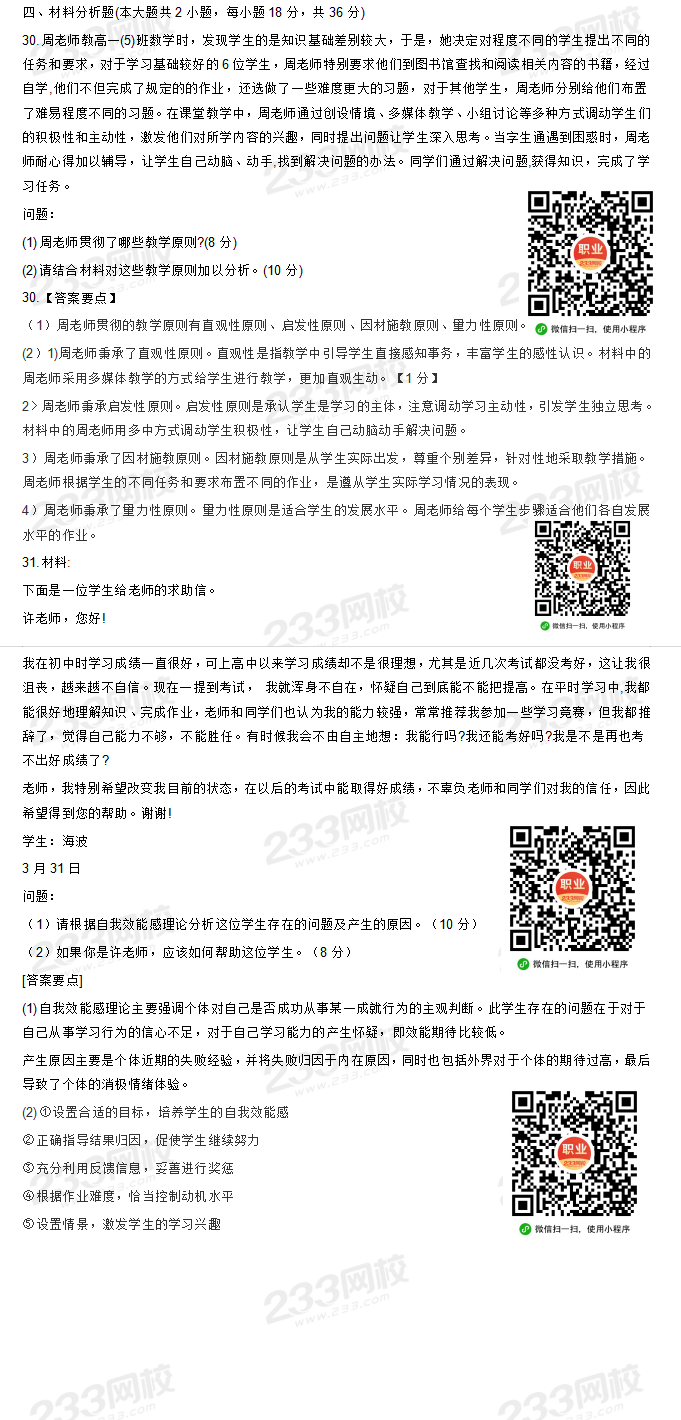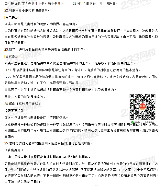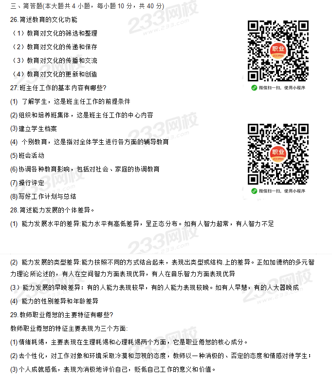 2020下半年教师资格真题答案视频讲解