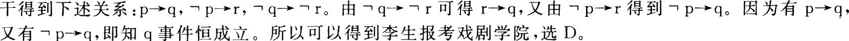 16.D【解析】设李生喜欢表演为事件p,李生报考戏剧学院为事件q,李生成为戏剧理论家为事件r。那么由题