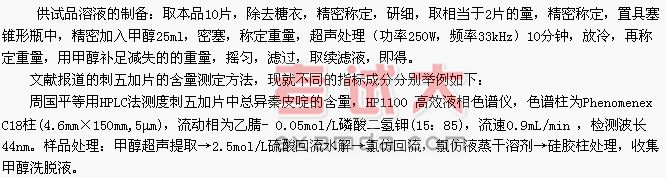 2005《中国药典》刺五加片含量测定项下: