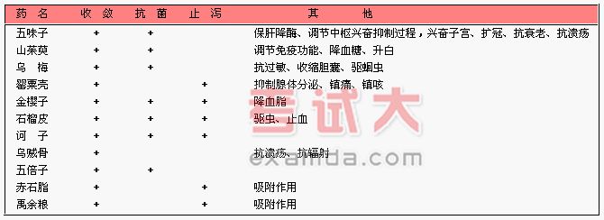 收涩药主要药理作用总括表