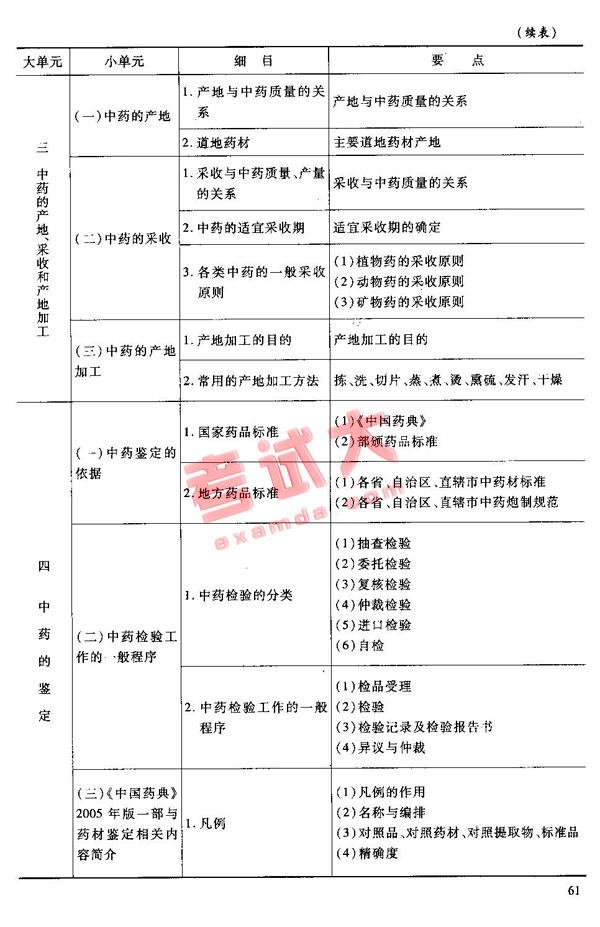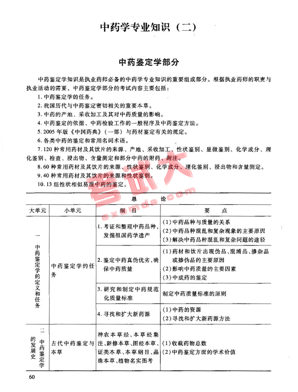 2007年国家执业药师资格考试大纲:中药知识二