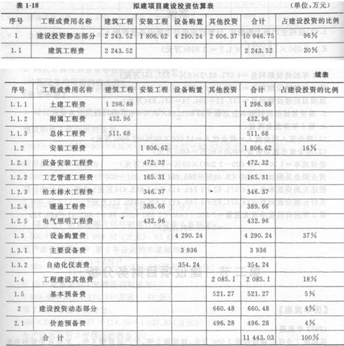 (6)编制拟建项目建设投资估算表,见表l-18。