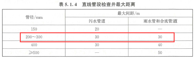 6.管径200~300mm的室外排水管道,直线需设多少个检查井时,两个检查井之间最大距离是()