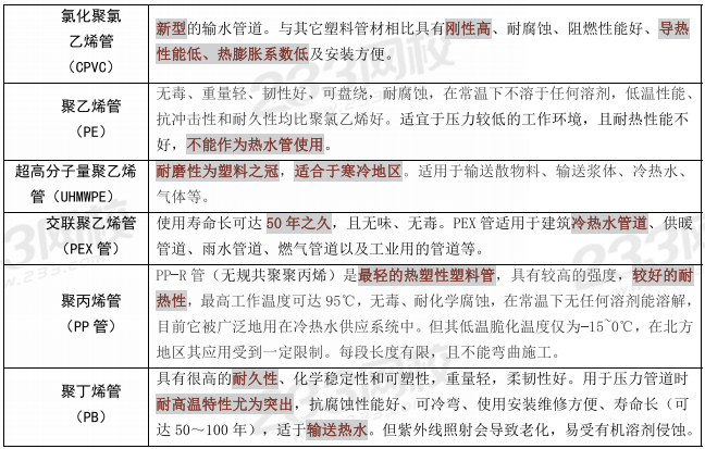 真题考点总结:塑料管