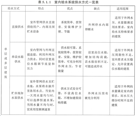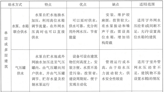 真题考点总结:室内给水系统供水方式--单层或多层建筑