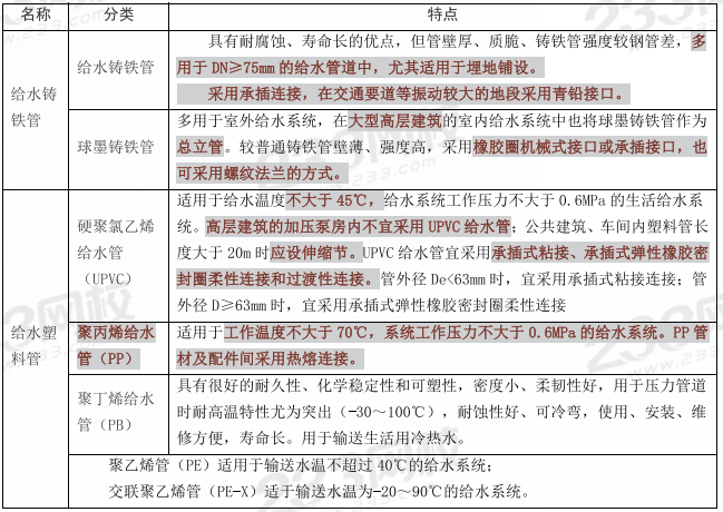 真题考点总结:给水管材料选用及连接