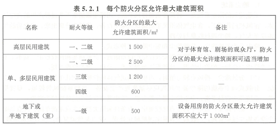 《建筑设计防火规范》GB50016-2014(2018年版)对每个防火分区允许最大建筑面积做了规定,见表 5.2.1。