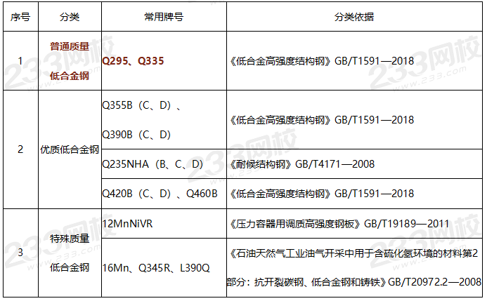 表1.1.3低合金钢分类与常用牌号【21.24】