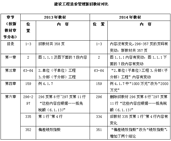 以下内容为2014年造价管理考试教材变化内容,希望考生认真阅读。