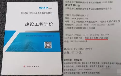 2018年造价工程师教材已新鲜出炉,其版本仍是沿用的2017版教材,其中计划出版社出版的《建设工程造价管理》、《建设工程计价》、《建设工程技术与计量(土建)》和《建设工程技术与计量(安装)》这4本教材没有任何变动,出版社出版的《建设工程造价案例分析》已按照去年公布的教材勘误表进行调整,其余地方没有变动。