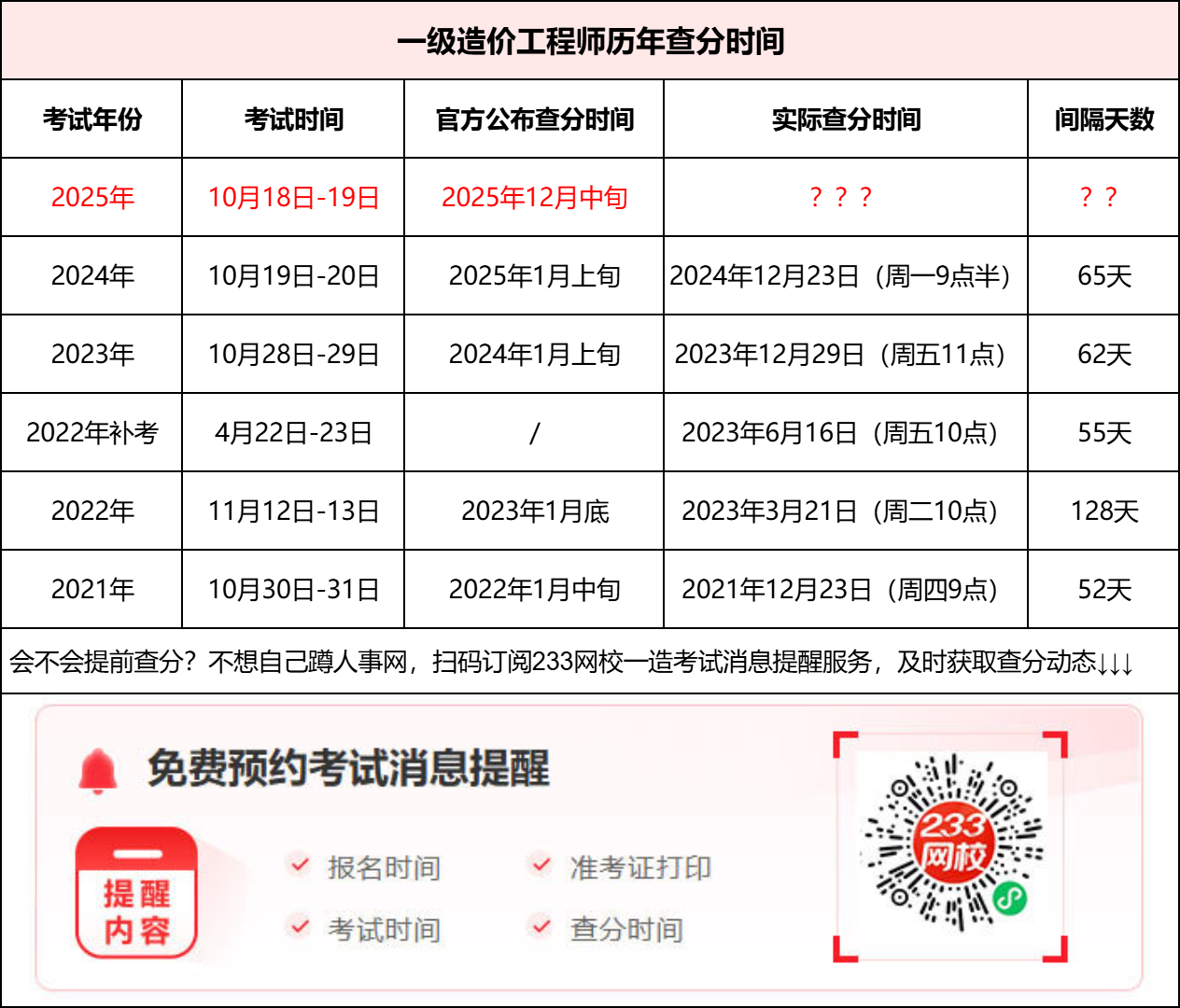 历年一级造价工程师查分时间