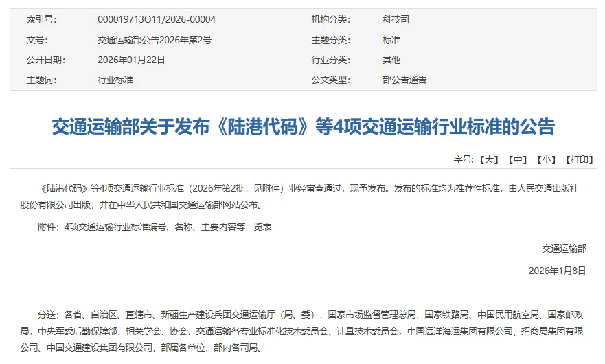 由交通运输部职业资格中心作为第一起草单位编制的行业标准《交通建设工程电子证照 第3部分:交通运输工程造价工程师注册证书》已于近日发布,将于2026年5月1日实施。