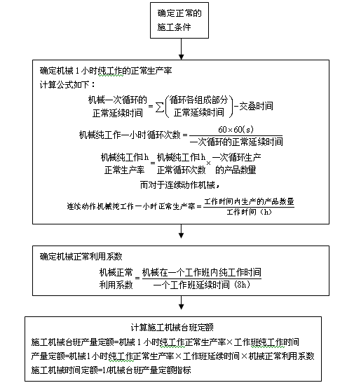 例题:已知某挖土机挖土的一次正常循环工作时间是2分钟,每循环工作一次挖土0.5m3,工作班的延续时间为8小时,机械正常利用系数为0.8,则其产量定额为()m3/台班。