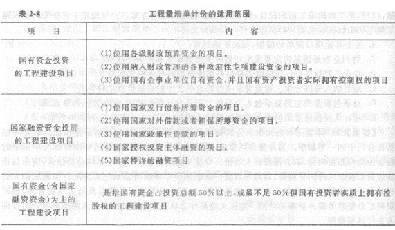 1.工程量清单计价的适用范围(表2-8)