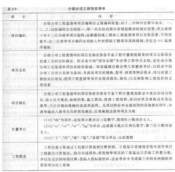 2.分部分项工程项目清单(表2-9)