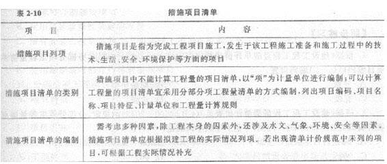 3.措施项目清单(表2-10)