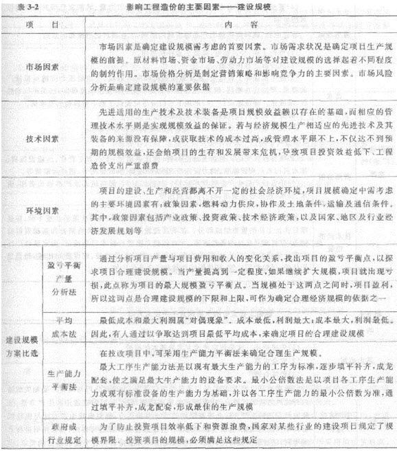 2.影响工程造价的主要因素——建设规模(表3-2)