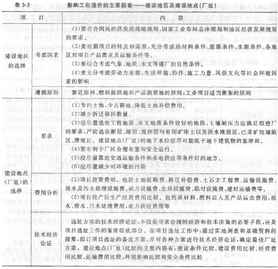 3.影响工程造价的主要因素——建设地区及建设地点(厂址)(表3-3)