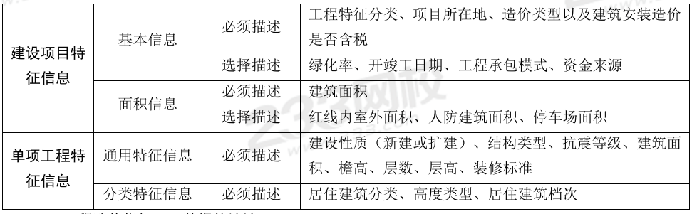 (2)按照工程造价指标层级,工程特征包括建设项目特征信息和单项工程特征信息