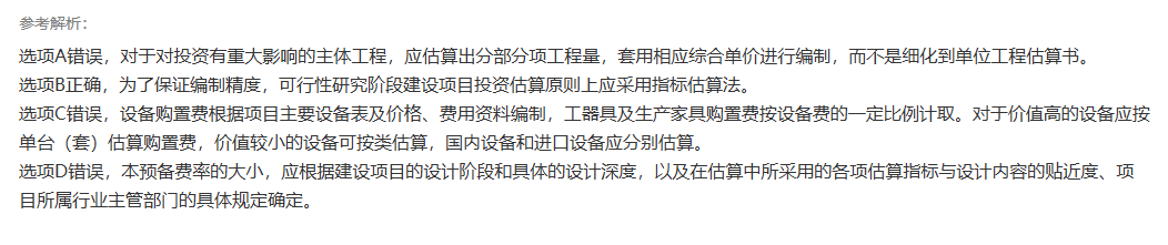 真题考点总结: 可行性研究阶段投资估算方法的概念