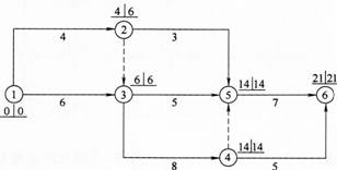 64、 某工程双代号网络计划如下图所示,图中已标出的各个节点的最早时间和最迟时间,该计划表明( )。