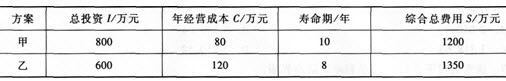 17.某工厂进行改扩建工程投资,有甲、乙两个投资方案,其投资额、年经营成本及综合总费用如表所示。基准投资回收期为4年。则甲、乙两方案的年折算费用分别为( )万元。